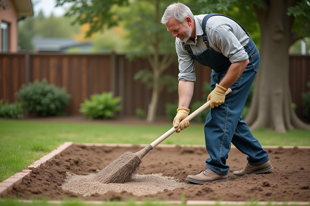 Poursuivez avec la préparation du sol. Étalez une couche de sable ou de tout-venant pour unifier et améliorer le drainage. Tassez soigneusement à l’aide d’un rouleau à gazon ou de la plaque vibrante. Un compactage régulier conditionne la planéité finale.